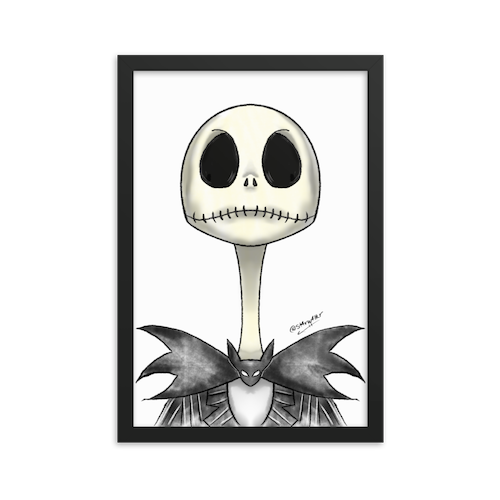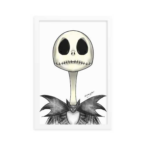 Bring some Halloween spirit into your home with this striking print featuring the face of Jack Skellington! Jack's ghostly white face and large, expressive eye sockets make him an instantly recognizable icon from Tim Burton's classic stop-motion film "The Nightmare Before Christmas."